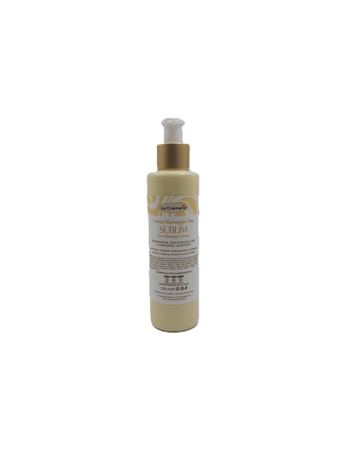 Crema da massaggio professionale dalla texture morbida e avvolgente, formulata con tripeptidi e acido ialuronico per promuovere rigenerazione tissutale, elasticità e ristrutturazione del derma. Scorrevole, piacevole al tatto, e gradevolmente profumata può essere utilizzata da sola oppure in combinazione con qualche goccia di Olio Sublime per aumentare la scorrevolezza e favorire massaggi più lunghi e intensi. Lascia la pelle nutrita, levigata e visibilmente più compatta.